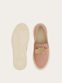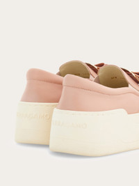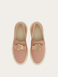 The slip-on sneaker is a versatile and stylish option for casual occasions. The nappa leather upper is soft and adorned with a new golden Vara buckle, featuring an on-tone grosgrain bow for a feminine touch. Elastic bands and padding along the neckline provide a comfortable fit. The rubber platform sole is lightweight and has custom detailing. - Composition: nappa - Made in ITALY - Product code: 030606 774816