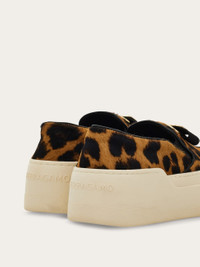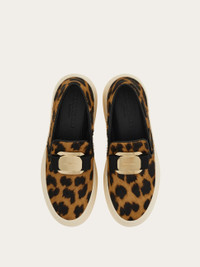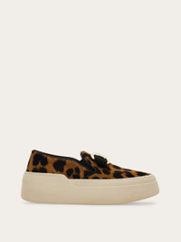 The epitome of elevated ease: this Ferragamo slip-on sneaker is crafted from animal-printed horsehair and decorated with the new golden Vara plate. The ultra-lightweight rubber platform sole is finished with custom detailing. - Composition: printed calfskin - Made in ITALY - Product code: 030710 784573