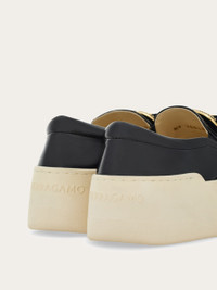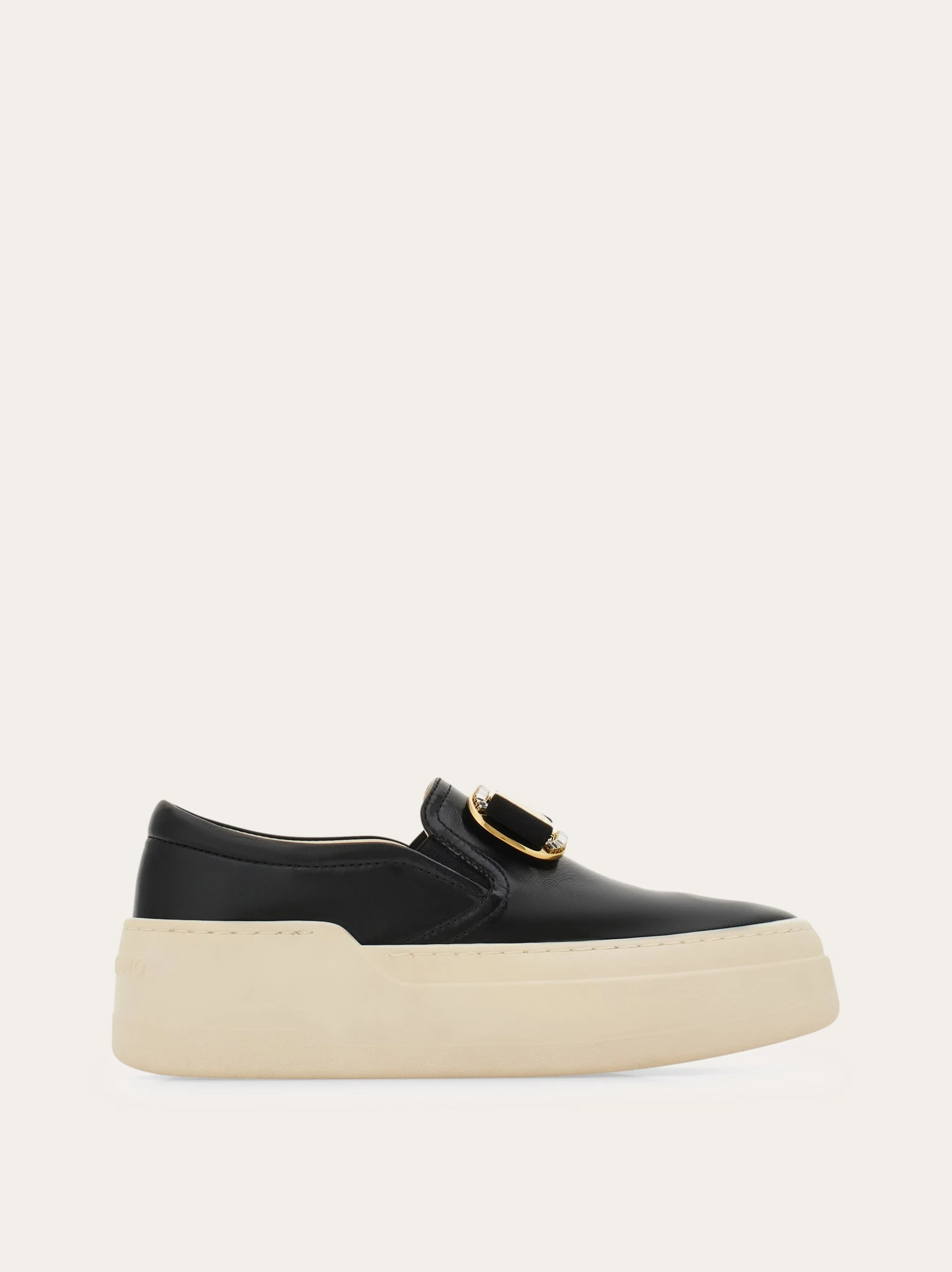 Inspired by the classic skate shoe, this new Ferragamo slip on is original and full of character. The upper is cut from the softest lambs' leather, and features a golden Vara buckle with tonal gros grain bow. Elastic inserts at the sides and the padding around the opening ensure a comfort fit, echoed by the ultra-light rubber sole with custom tread. - Composition: lambskin - Made in ITALY - Product code: 030606 781490