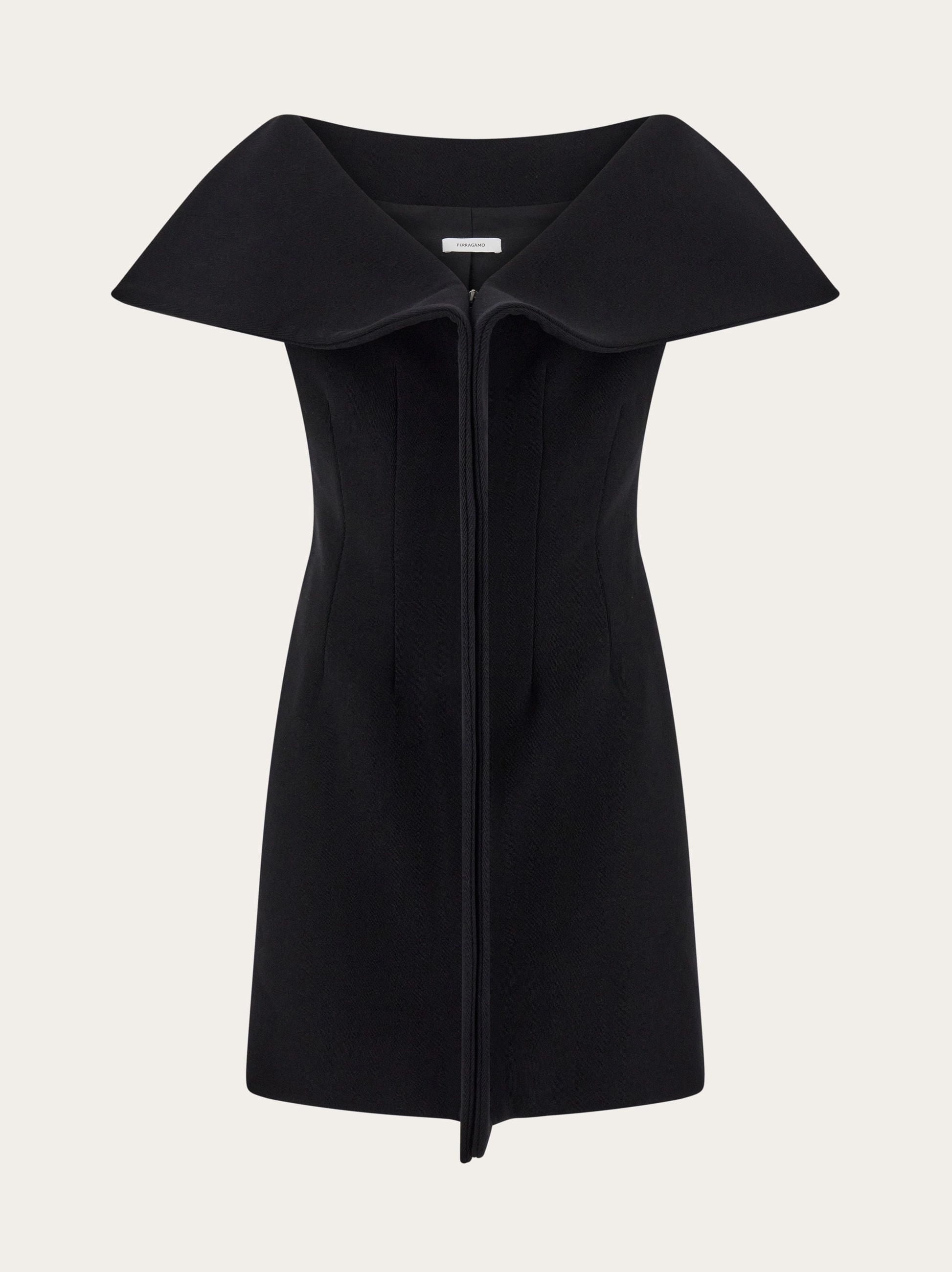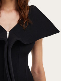 Sleeveless jacket in stretch technical gabardine, featuring a fitted silhouette that highlights the figure. The large lapel opens up, resting on the shoulders and revealing the decollete. The concealed zipper and button closure keep the design clean, while the hip-length allows it to be worn as a mini dress for a more feminine styling. - Composition: 47% polyamide, 38% polyacrylic, 13% wool and 2% elastane - Made in ITALY - Product code: 13G497 778566