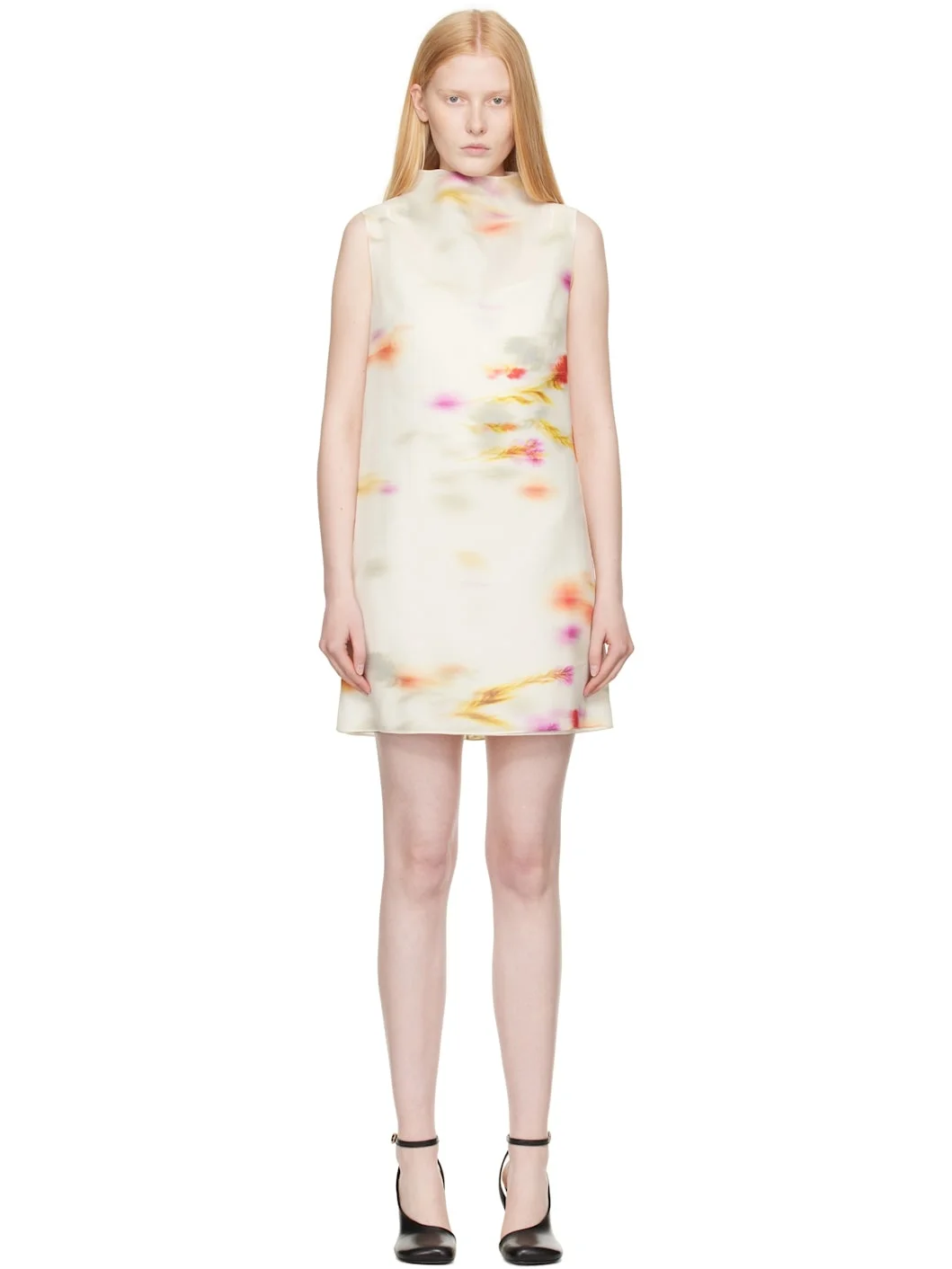 Reversible semi-sheer silk organdy minidress. Graphic pattern printed throughout. Reverse in white silk organdy. Graphic pattern printed throughout. · Mock neck · Button fastening and keyhole at back · Detachable silk crepe slip Supplier color: Ivory/Multicolor 100% silk. Made in Italy 251270F052000
