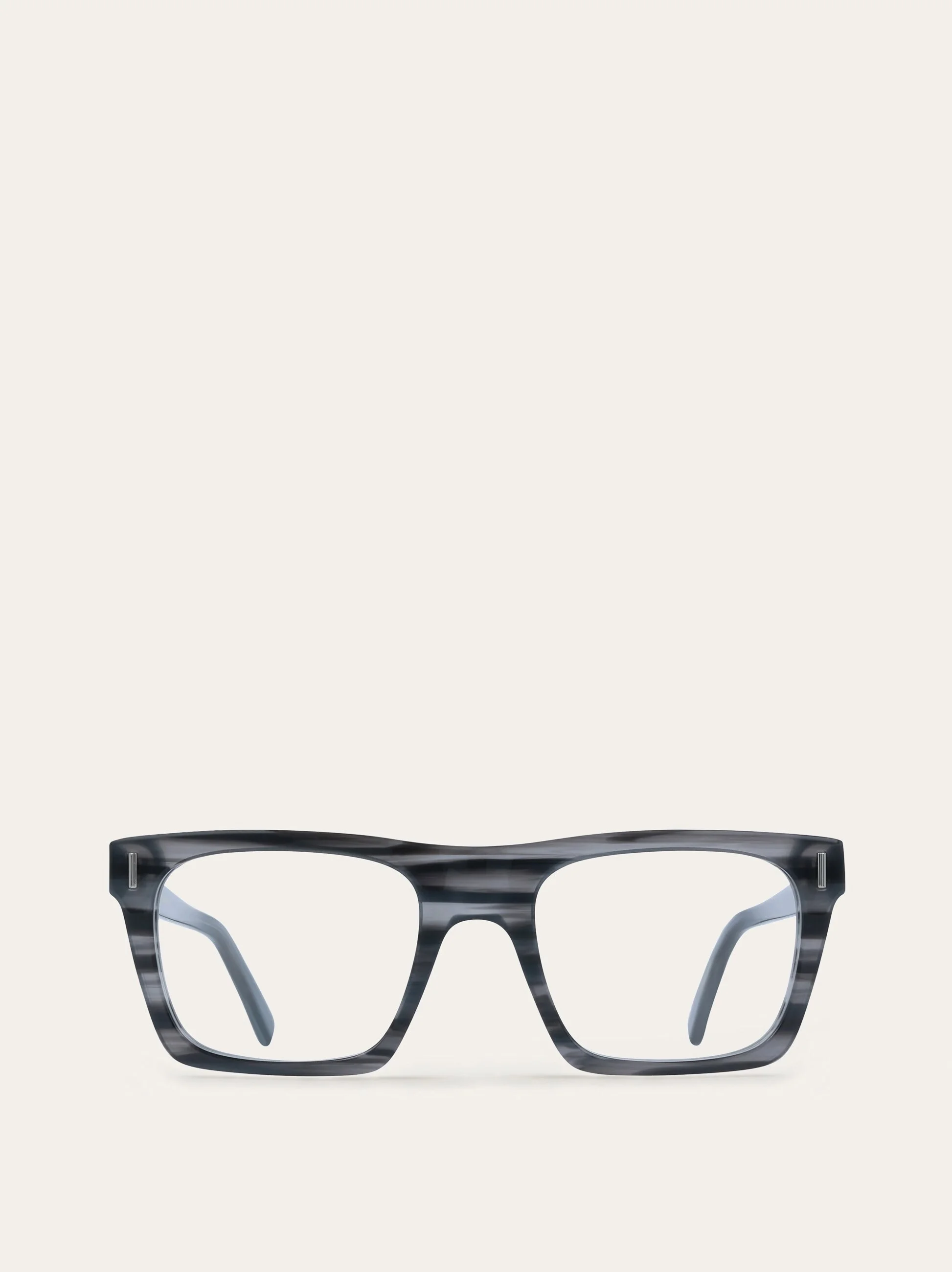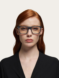 Rectangular acetate optical model. Metal rivets on the front of the frame join it to the temples, which feature a lasered Ferragamo logo. The custom metal core is visible in the transparent colourings. - Composition: acetate - Transparent demo lenses - Global Fit. Lens-nose-temple size: L54/H43-21-150 - Frame compatible with graduated lenses - Made in ITALY - Product code: 51V029 786739