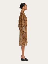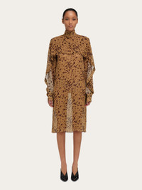 Cut from the lightest silk georgette, this long sleeved dress is decorated with the orchid print. The pattern zooms in on a photograph of a lily taken by Robert Mapplethorpe, revealing an original graphic print that features throughout this season’s collection. Across the shoulders a large billowing peplum adds dramatic volume, which is tapered along the length of the sleeves. - Composition: 100% silk - Made in ITALY - Product code: 13H646 788422