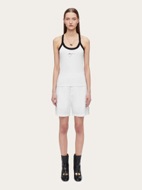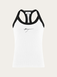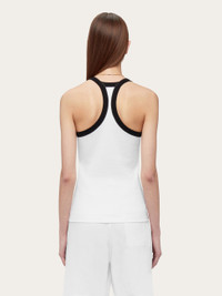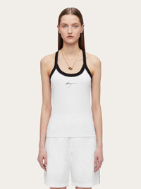 Luxurious tank top made of pure organic jersey cotton. The soft, semi-stretch fabric features a contrasting trim, racer back, and embroidered signature across the chest. - Composition: 100% organic cotton - Made in ITALY - Product code: 112806 776109