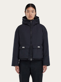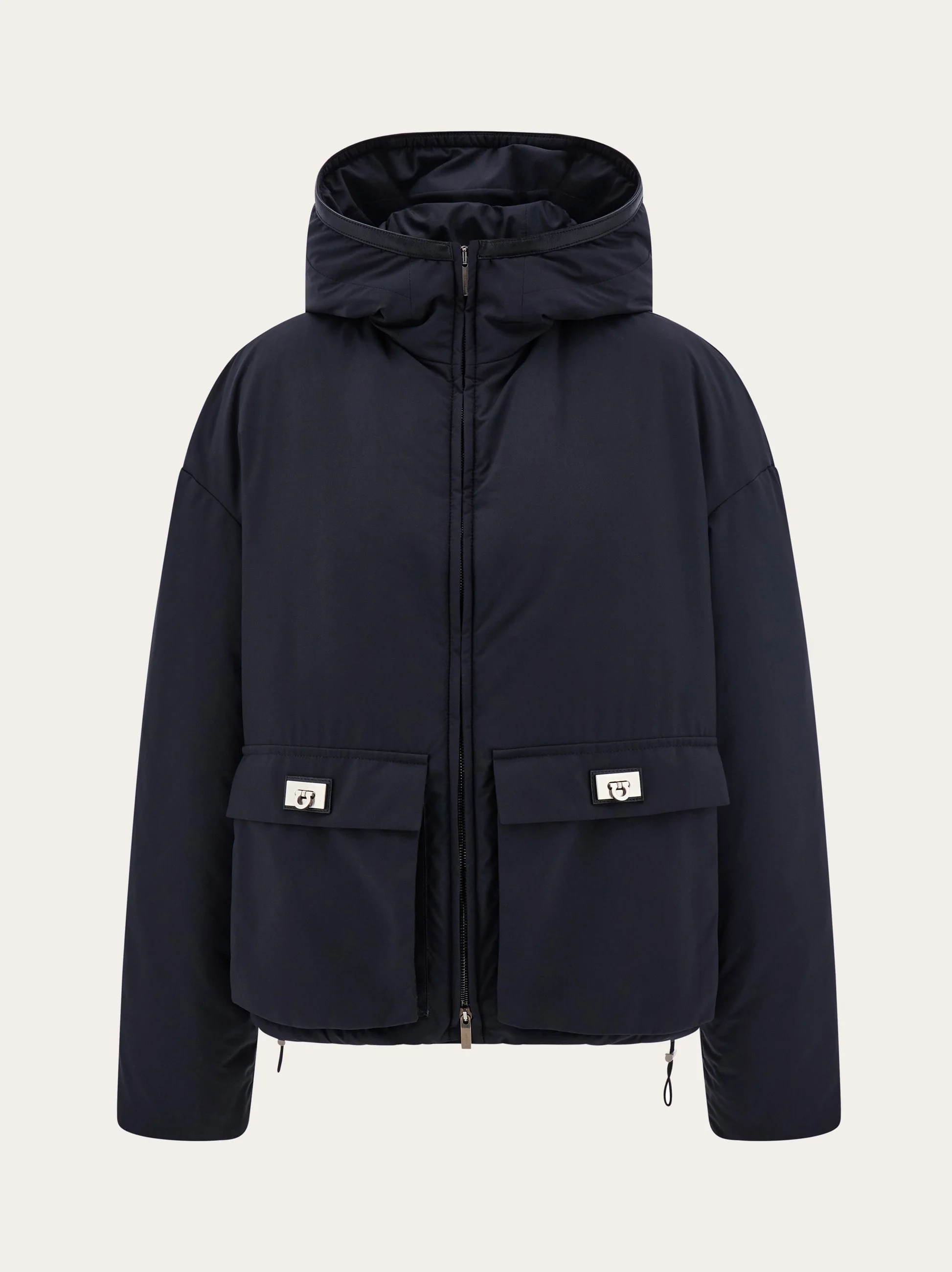 Trendy yet timeless, this new padded jacket is a savvy balance of casual style with a refined appeal. The sleek silhouette features a high collar with hood and a two-way zip runs along the placket. Note the large applied pockets detailed with leather Hug buckles. - Composition: 100% polyamide - Made in ITALY - Product code: 13I013 790896