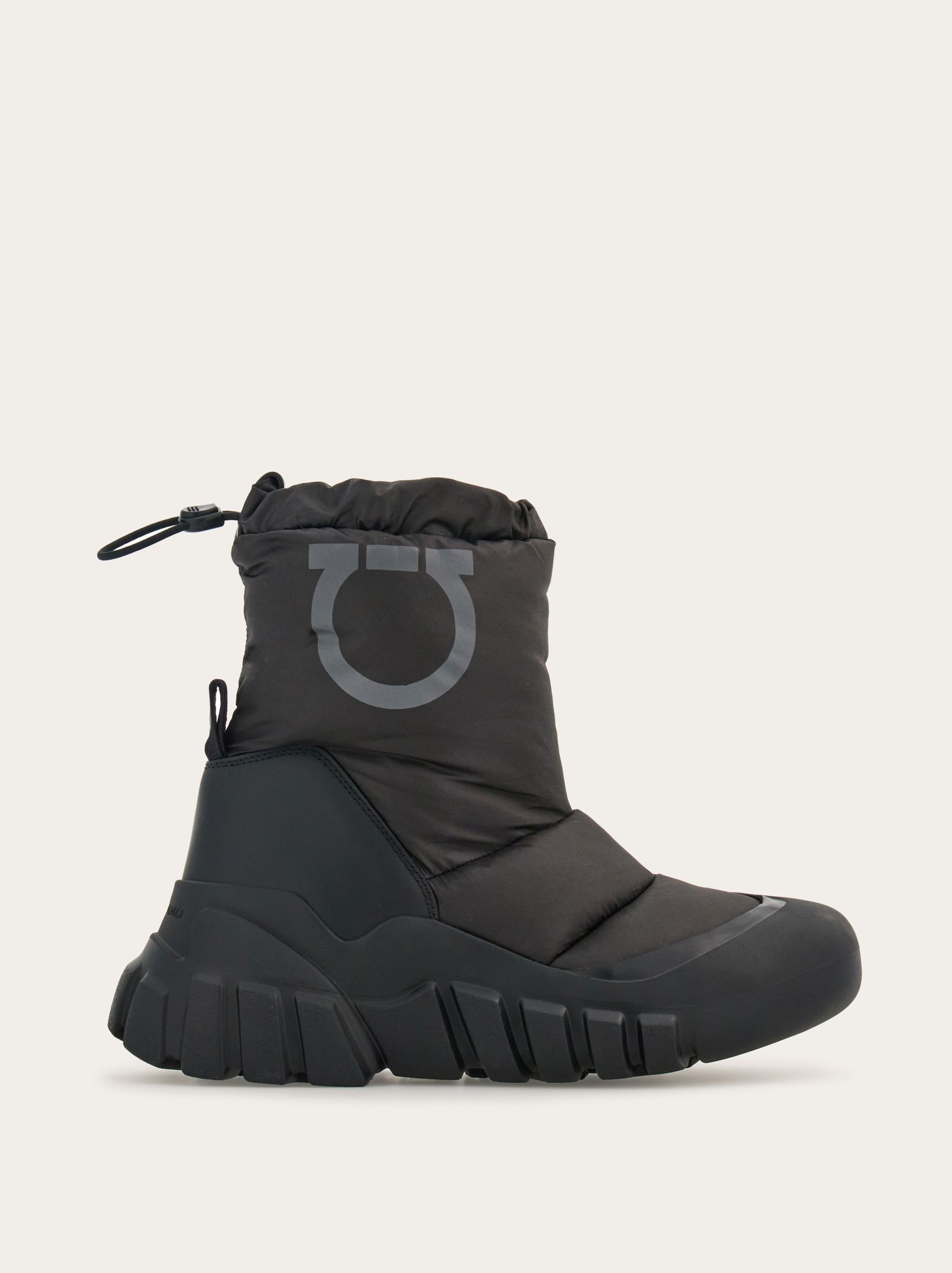 Perfect for a little après ski, this padded snow boot will bring a touch of glam to your next trip to the slopes. The fabric upper is waterproof, cinched by a drawstring above the ankle and decorated with a contrasting Gancio on the side. The rounded toe and chunky silhouette are complemented by a rubber sole with chunky tread. A rubber Gancio loop is placed above the heel. - Heel 2 cm - Composition: fabric - Product code: 01H416 769958 - Made in ITALY