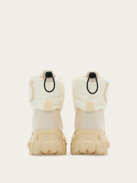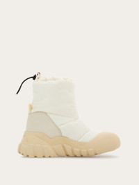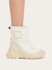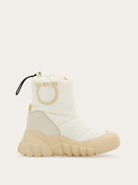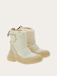 Perfect for a little après ski, this padded snow boot will bring a touch of glam to your next trip to the slopes. The fabric upper is waterproof, cinched by a drawstring above the ankle and decorated with a contrasting Gancio on the side. The rounded toe and chunky silhouette are complemented by a rubber sole with chunky tread. A rubber Gancio loop is placed above the heel. - Composition: fabric - Made in ITALY - Product code: 01H416 771473