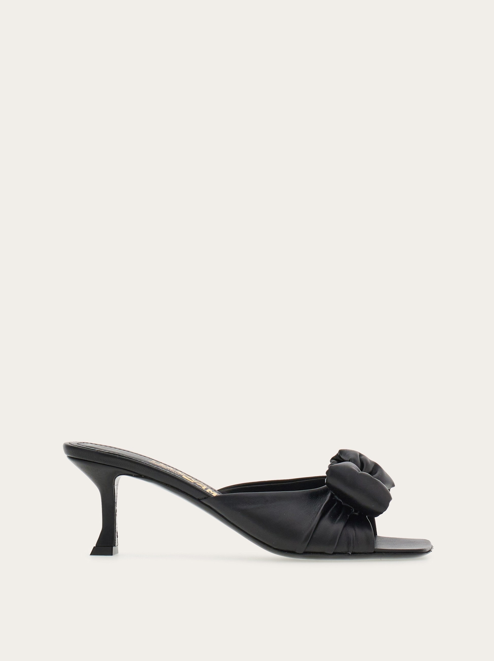 Ultra-elegant feminine classic: the kitten heel mule. With a padded nappa bow across the toes, this easy slip on adds a touch of glam to any look. Rich details include a custom metal plate in the center of the bow, and geometric details on the heel. - Composition: nappa - Made in ITALY - Product code: 01H999 772852