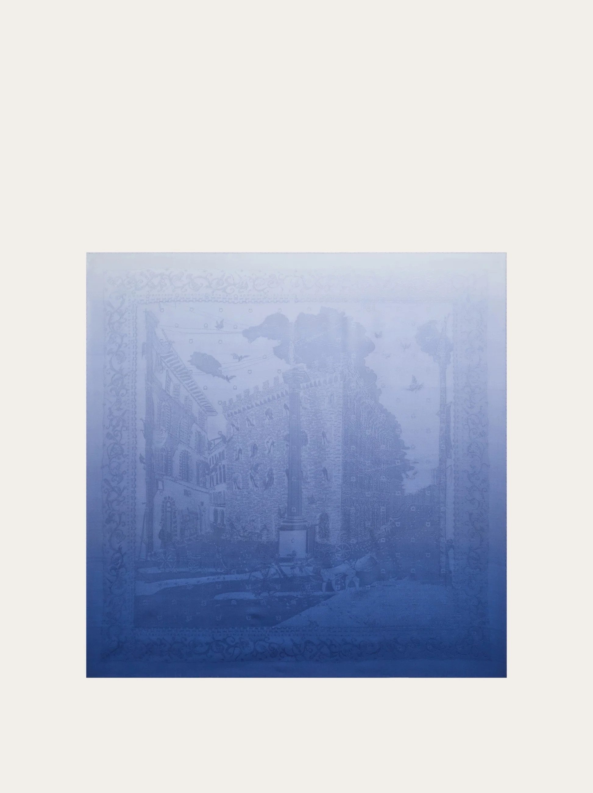 The soft nuances of this silk scarf are brought to life by expert jacquard workmanship. The pattern is based on an archive design from 1961, with Palazzo Feroni and an array of details linked to the beautiful world of shoes! - length 35.4 IN width 35.4 IN - Composition: 100% silk - Made in ITALY - Product code: 310214 785484