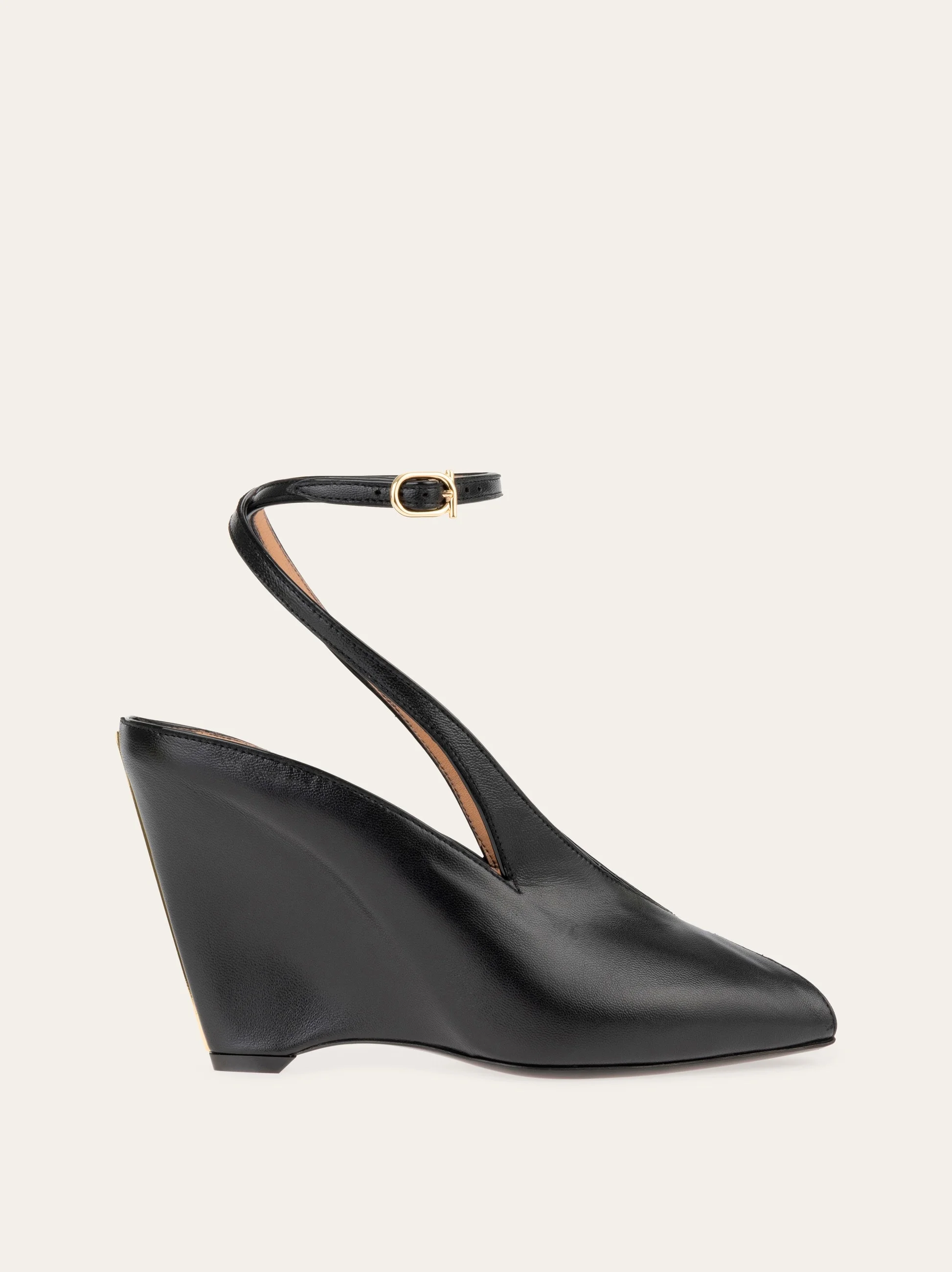 With its retro sophistication and contemporary style this new wedge sandal is truly striking. The patent leather upper features a peep toe and slim ankle strap for stability and a sensual detail. Covered wedge heel. - Composition: nappa - Made in ITALY - Product code: 01K873 788942