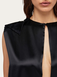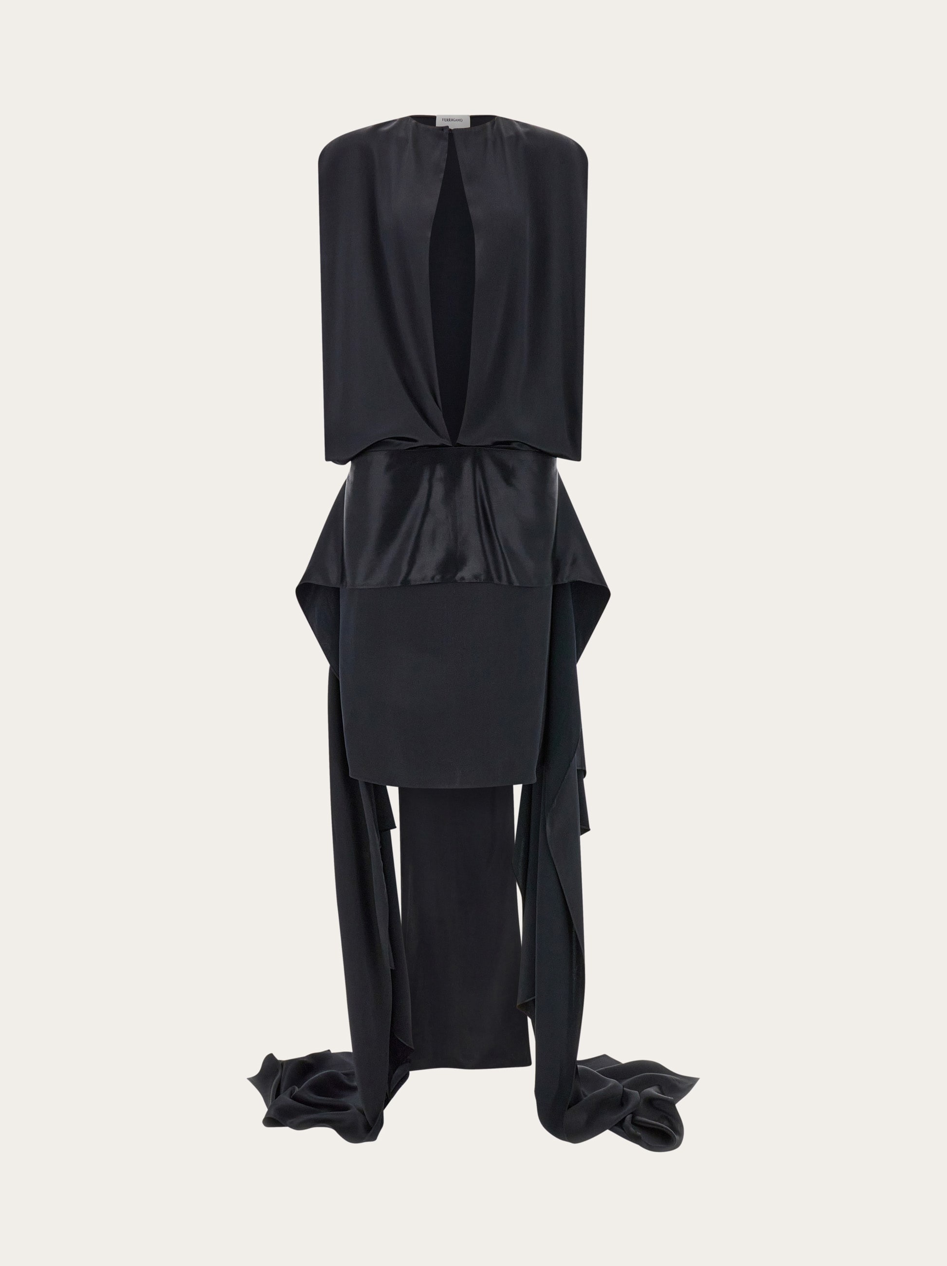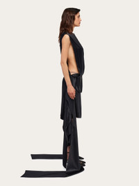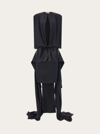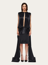 Unique features and subtle details give this cocktail dress a unique flair. Made of sustainable viscose with a fluid, full bodied feel, the cut is straight, with a deep eyelet neckline at the front and a peplum that swoops and drapes from the waist to form a long, large sash. Perfect for a dramatic entrance, the hidden side zip ensures a comfortable fit. Knee length. - Composition: 100% sustainable viscose - Made in ITALY - Product code: 13G180 777507