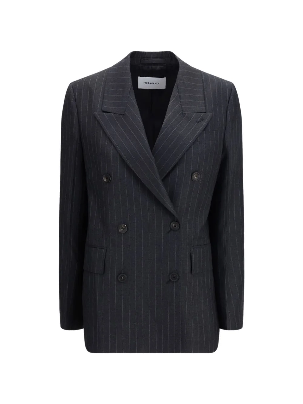 Pinstripe wool blazer Highlights - Black and white - Pinstripe - Double breasted - Six-button closure - Flap pockets Made in Italy Composition Virgin Wool 100% Washing instructions Read Manufacturer Guidelines
