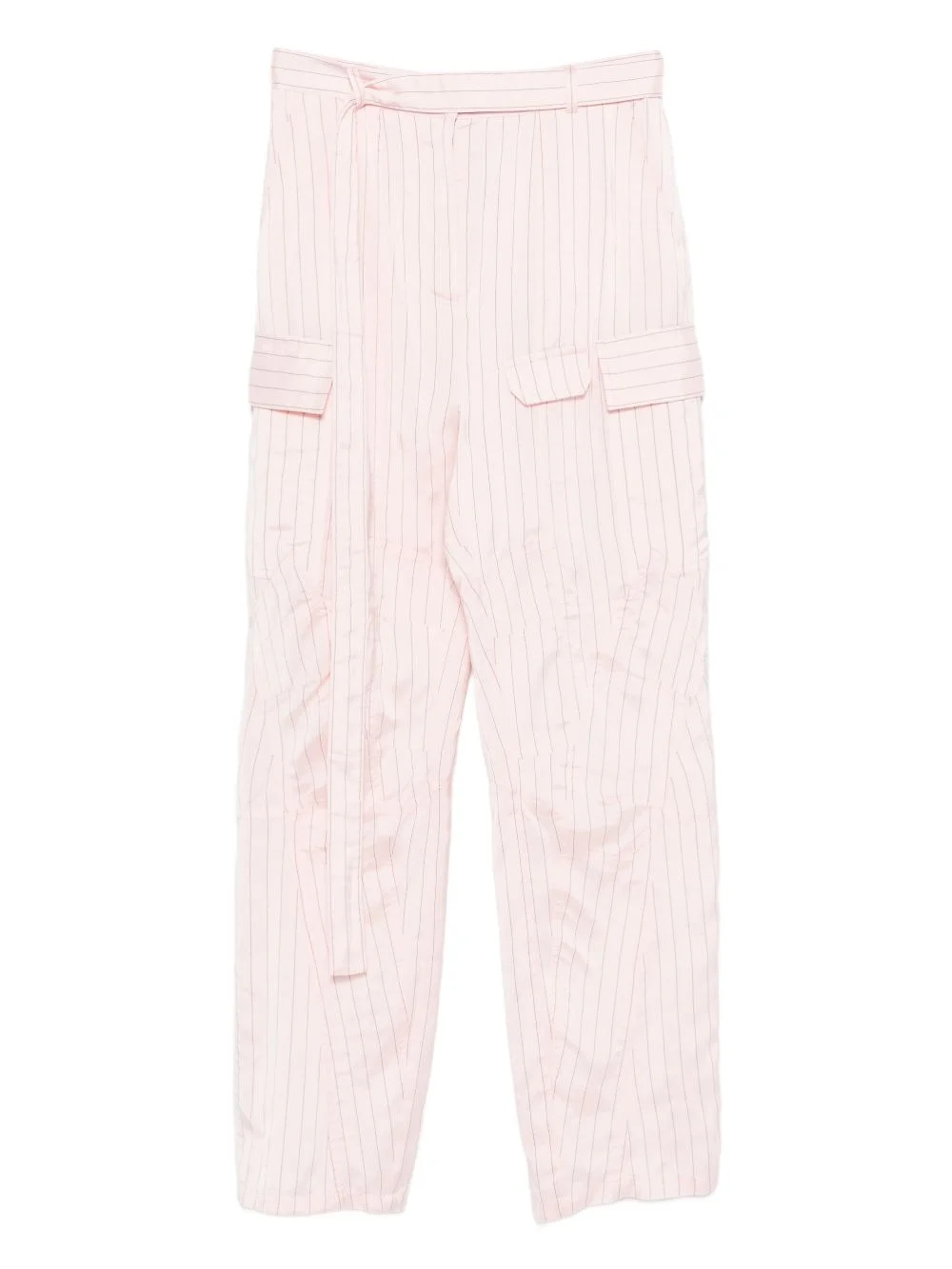 pinstripe-pattern cargo-pocket trousers Highlights - Powder pink - Pinstripe pattern - Belted waistline - Side cargo pockets - Belt loops Made in Italy Composition Outer: Cupro 51%, Viscose 48%, Polyester 1% Lining: Cotton 100%, Viscose 52% Washing instructions Dry Clean Only
