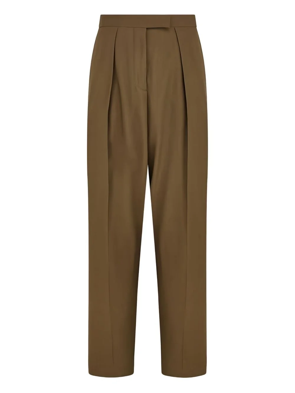 pleat-front tailored trousers Highlights - Olive green - Concealed front fastening - Pleat detailing - High waist - Side pockets - Straight leg - Pressed crease Made in Italy Composition Viscose 60%, Virgin Wool 40%