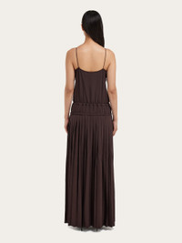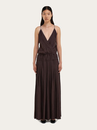 Timeless elegance with a current twist. This long vestal dress has thin cross-over shoulder straps and a deep V-neckline. A double elasticated waist that hangs softly at the hips introduces the skirt, meticulously folded into a series of pleats that enhances the goddess-like drape of this floor length masterpiece. - Composition: 97% viscose, 3% elastane - Made in ITALY - Product code: 13H314 785401