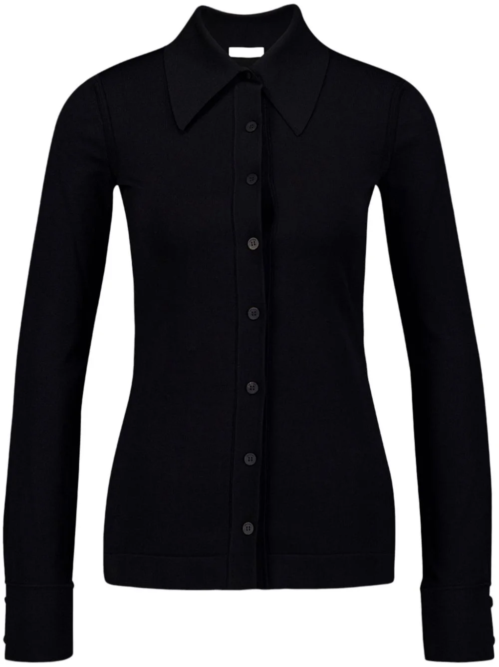 pointed-collar cardigan Highlights - Jet black - Lightweight construction - Pointed flat collar - Front button fastening - Long sleeves - Buttoned cuffs - Straight hem Made in Italy Composition Viscose 100%