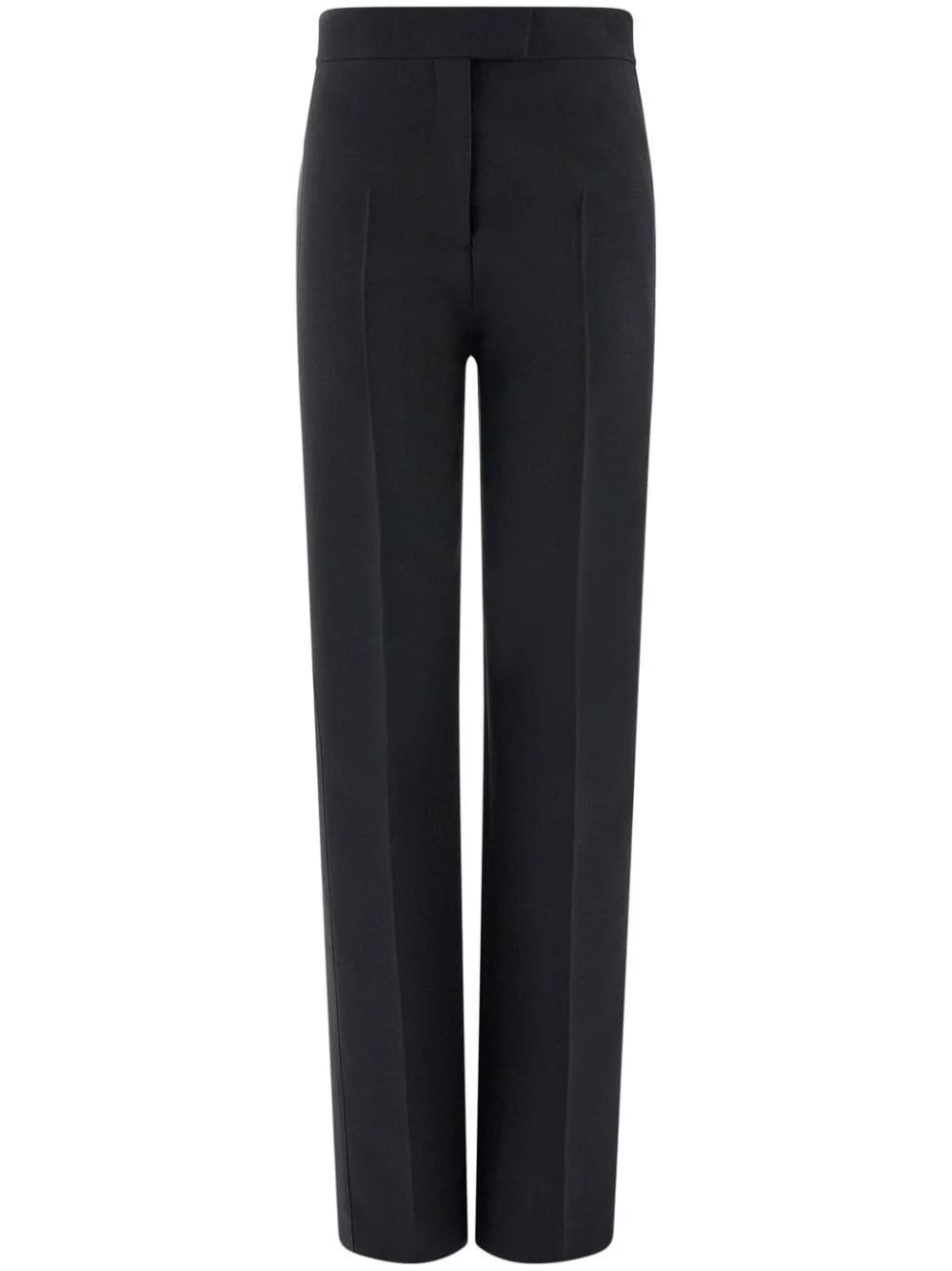 press-crease high-rise trousers Highlights - Black - Virgin wool - Twill weave - High-rise - Straight leg - Concealed front button, hook and zip fastening - Dart detailing - Pressed crease - The crease-effect on this piece is very much intentional, no ironing necessary. Made in Italy Composition Outer: Virgin Wool 100% Lining: Silk 78%, Polyester 22%