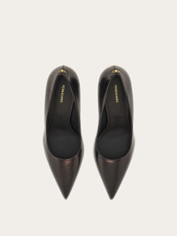 Feminine and glam with a touch of grit, this new Ferragamo pump is cut from soft, sumptuous calfskin leather, with a pointed tip and squared neck to echo its contemporary sensuality. The 7cm heel is just the right height for day to night looks, with a double Gancio above it for an iconic finish. A golden F is placed under the sole. - Composition: goatskin - Made in ITALY - Product code: 01J047 776893