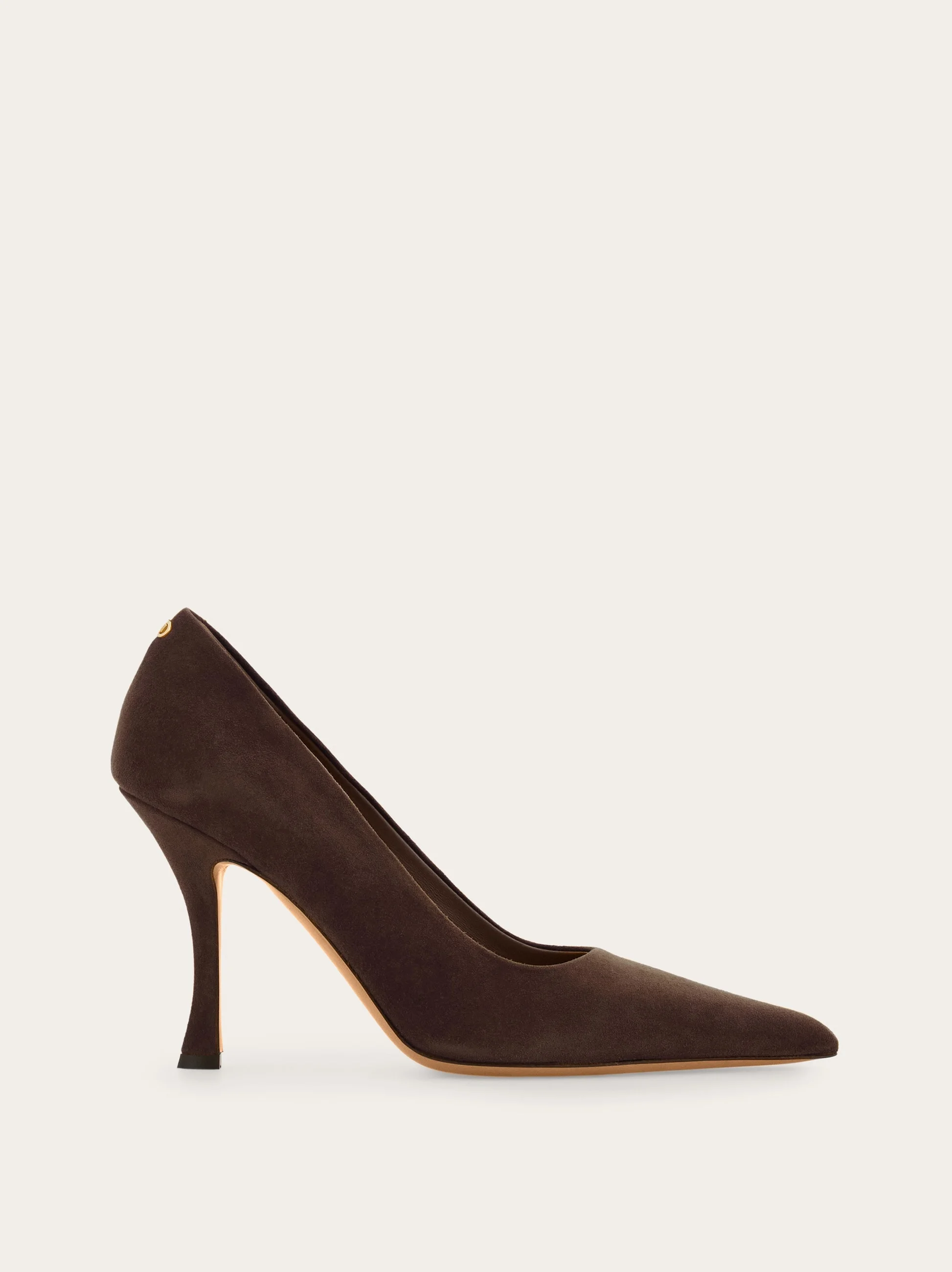 Feminine and glam with a touch of grit, this new Ferragamo pump is crafted from kid leather, specially developed for a soft hand feel, with a tortoiseshell pattern nodding to the 70s aesthetic. The golden Gancini detail, discreetly placed at the back of each ankle, adds a signature finish. - Composition: kid suede - Made in ITALY - Product code: 01K585 792306