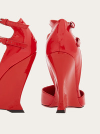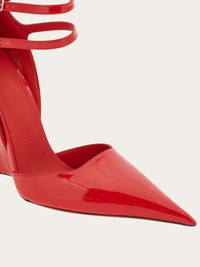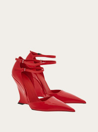 With their pointed toe and double ankle strap, these pumps are the new fashion statement of the season. Crafted from shiny, soft-touch patent leather, they are complemented by the contoured wedge heel, inspired by the lines of our iconic F wedge. Sophisticated and cool, they will pair with your most feminine looks and add a contemporary edge. - Composition: patent calfskin - Made in ITALY - Product code: 01G554 766360