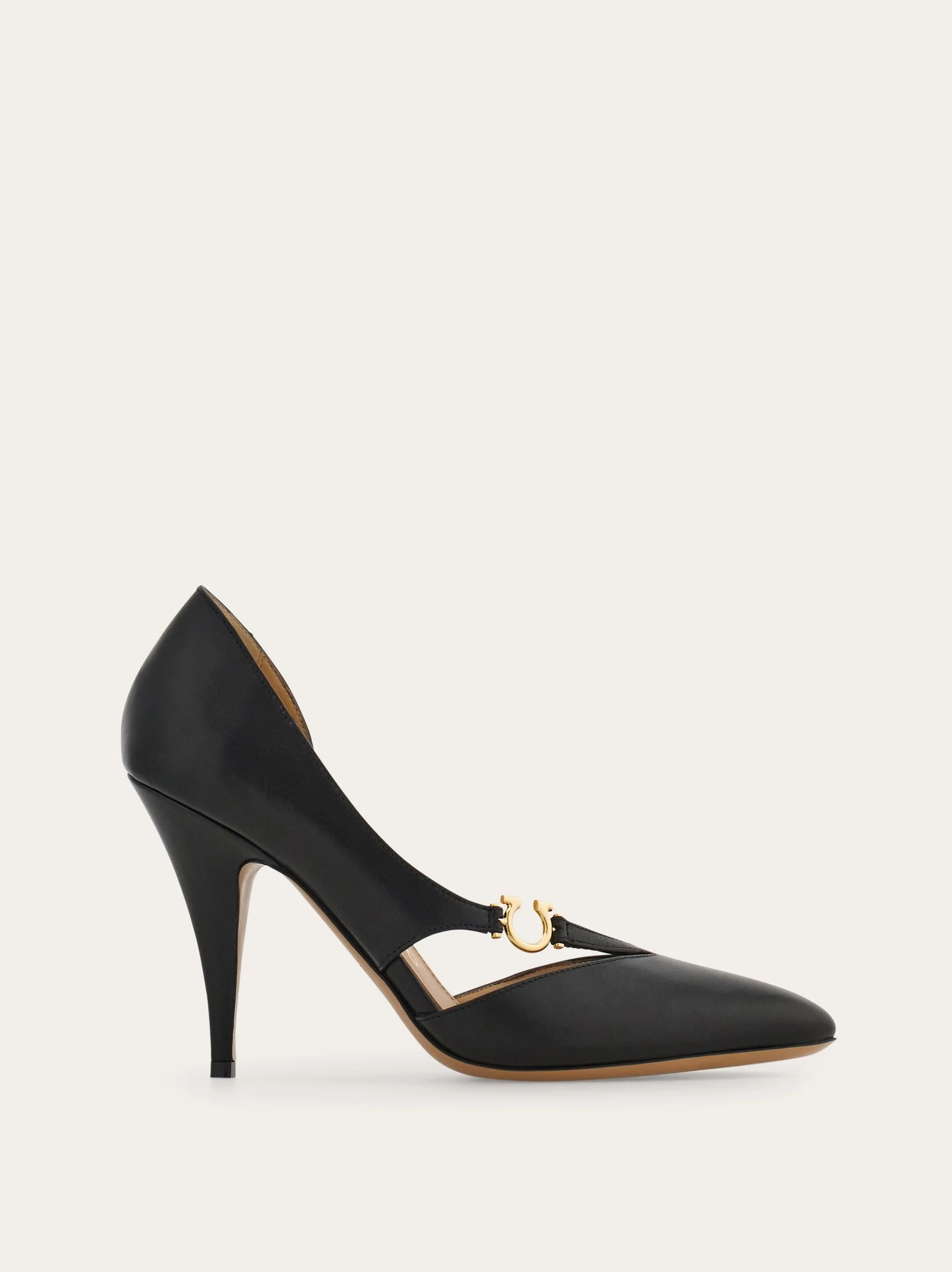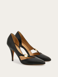 With its foot-framing cutout and elegantly cut, rounded vamp, this new d'Orsay pump fuses vintage and contemporary elements. It's set on a tapered heel, modeled on retro designs, and finished with the signature golden Gancini for a precious touch. - Composition: kidskin - Made in ITALY - Product code: 01K456 784934