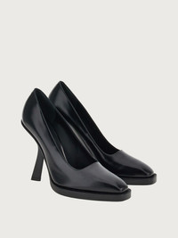 Soft calfskin pumps with a tapered, squared toe. The protruding, rolled welt adds a bold, contemporary detail. Shaped heel inspired by our iconic F shape, featuring a geometric line and a glossy finish. - Heel 10,5 cm - Composition: calfskin - Made In ITALY