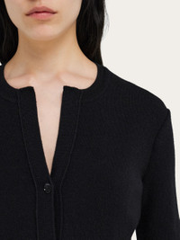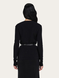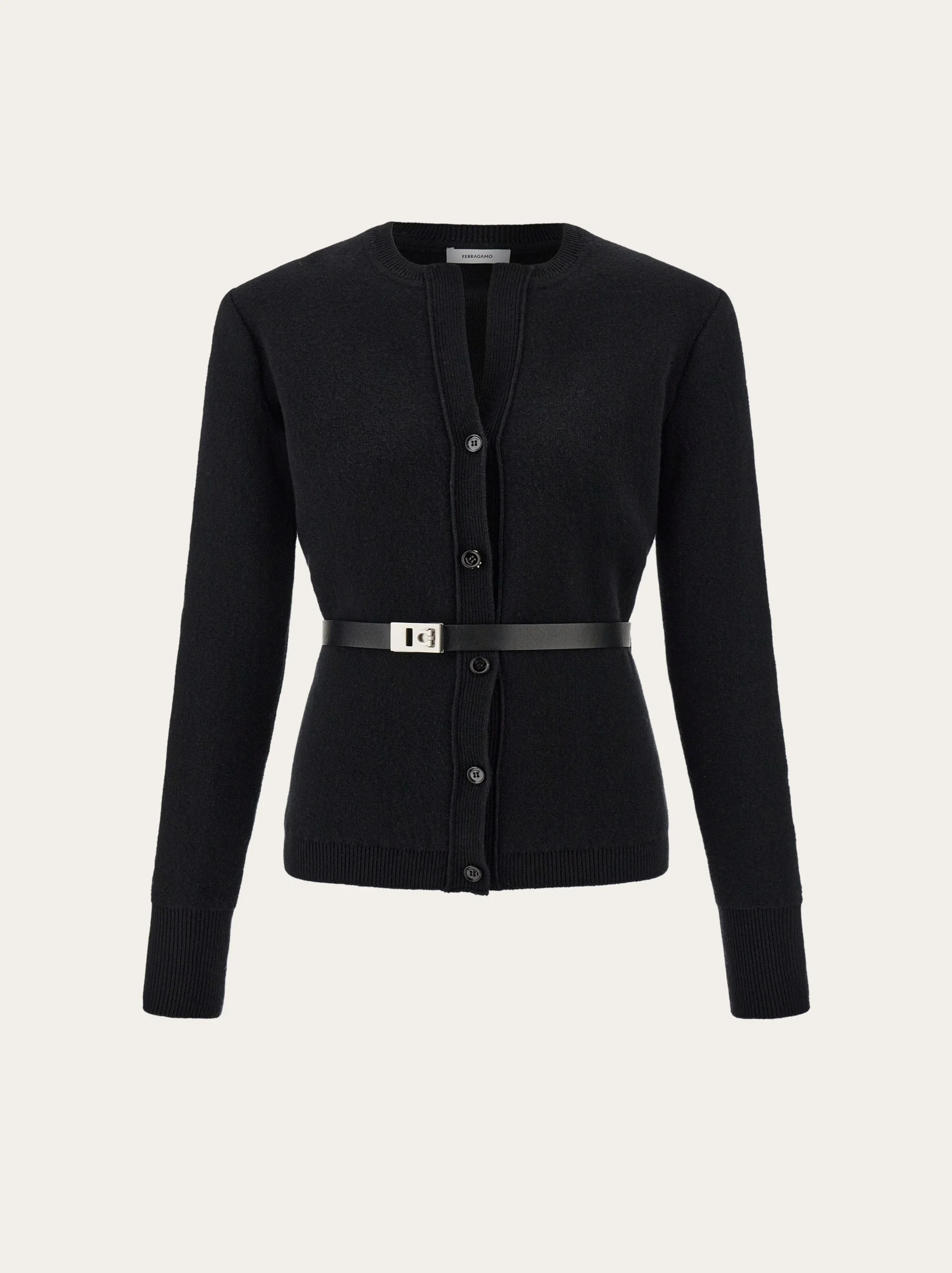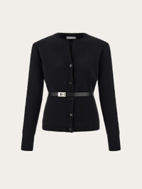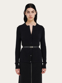 Evergreen pieces with contemporary touches: this season’s staples are designed to last a lifetime. Made of a fine blend of pure wool and viscose, this smooth cardigan is cinched at the waist via a leather belt with satin finish Hug buckle. Ribbed trims and high cuffs define the outline, and custom buttons fasten at the front. - Composition: 70% pure virgin wool, 30% viscose - Model measurements: Height 5' 10"/178 cm cm; Bust 30½"/78 cm; Waist 23"/59 cm; Hips 35"/89 cm - Model wearing: XS - Made in ITALY - Product code: 112978 780697