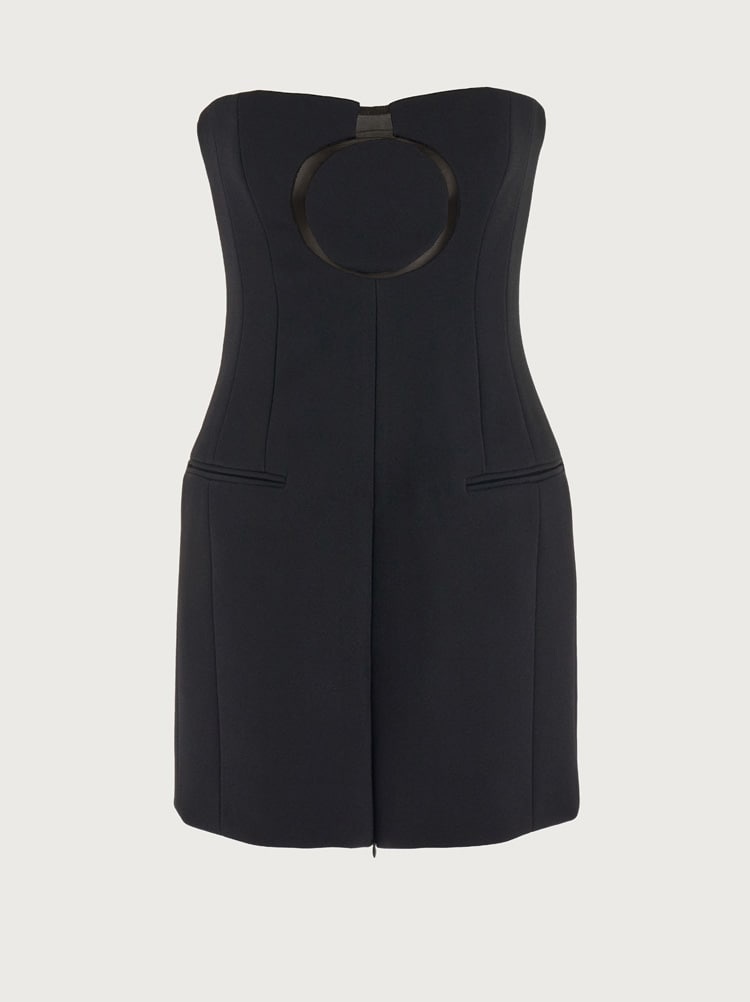 Slim fit, sable wool crepe, sleeveless mini dress. The invisible zip at the front opens the front slit. Contrasting silk tulle inserts are used to create a striking Gancio on the front. Unlined for a light, breezy finish. Model measurements: Height 5' 11 "/180 cm, Bust 30½"/78 cm, Waist 23½"/60 cm, Hips 34½"/88 cm Worn size: 38 - Composition: 100% pure virgin wool - Made In ITALY