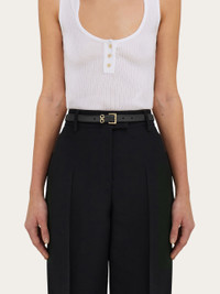 A slim belt in soft, naturally grained calfskin, designed for an extra touch of femininity. The geometric gold-finish buckle is complemented by a loop featuring the signature double Gancini detail. - height 0.7 IN - Composition: calfskin - Made in ITALY - Product code: 230413 786298