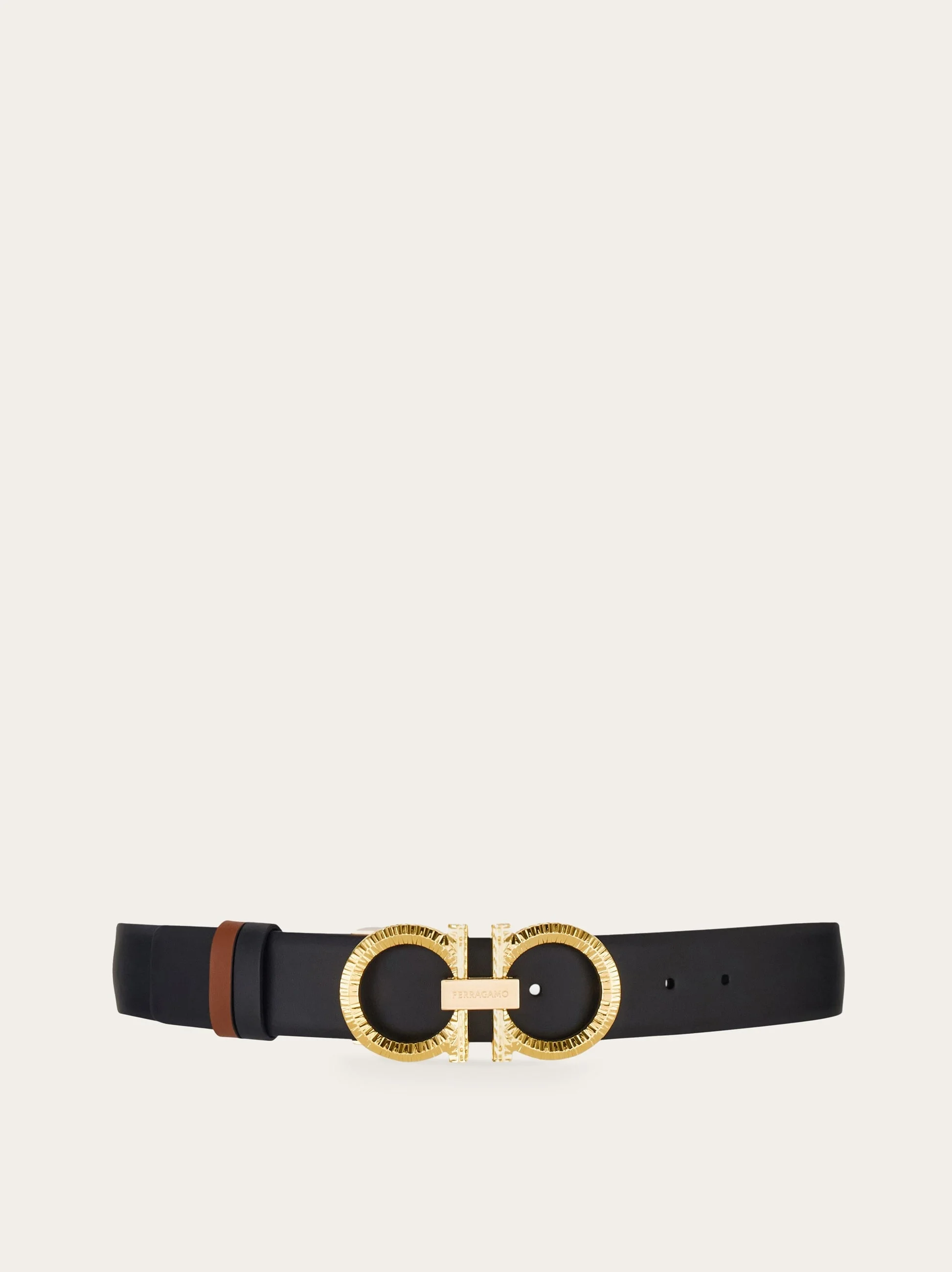 A cool evolution of the brand’s most iconic belt, featuring a reversible two-tone design for customizable styling. The Gancini-adorned buckle showcases a distinctive hammered texture with a palladium finish. The adjustable length allows for a more personalized fit and style. We invite you to check our size guide for more information. - height 1.3 IN - Composition: calfskin - Made in ITALY - Product code: 230421 786305