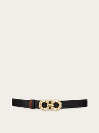 Reversible and two-tone, this belt captures Ferragamo’s style with a feminine touch. The Gancini-shaped buckle features a sculpted, textured design, inspired by the delicate folds of fabric. The adjustable length allows for a more personalized fit and style. We invite you to check our size guide for more information. - height 0.9 IN - Composition: calfskin - Made in ITALY - Product code: 230424 786330