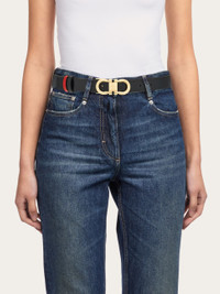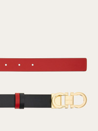 Subtle for an extra touch of femininity, reversible for use that transcends everyday looks. Smooth calfskin belt with reversible construction, adjustable length and two-tone design. The iconic Gancini buckle in a gold finish is offered with a squared profile for a graphic and more current note. The adjustable length allows for a more personalized fit and style. We invite you to check our size guide for more information. - height 0.9 IN - Composition: calfskin - Made in ITALY - Product code: 230294 771068
