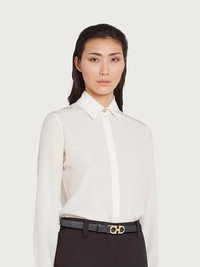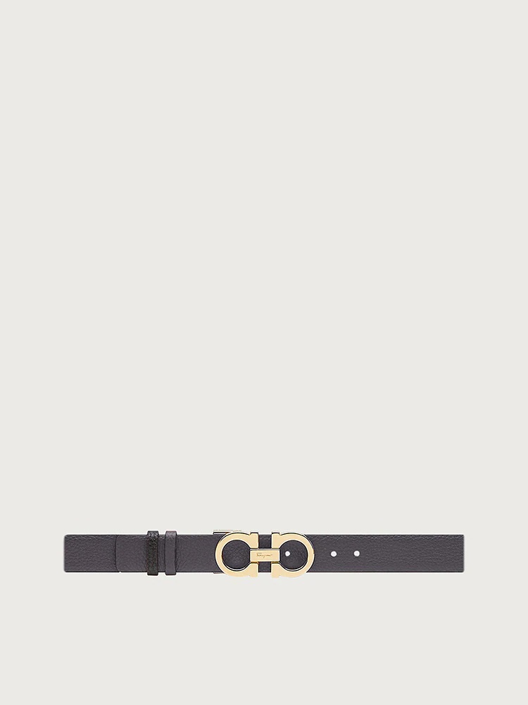 Feminine and versatile, this slim belt has been crafted from supple, natural grained calfskin leather and features a gold-tone Gancini buckle for a touch of effortless elegance. The slender design will work with crisp tailoring and casual attires alike, while the adjustable length ensures a personalized finish. - Composition: Calf leather - Made In ITALY