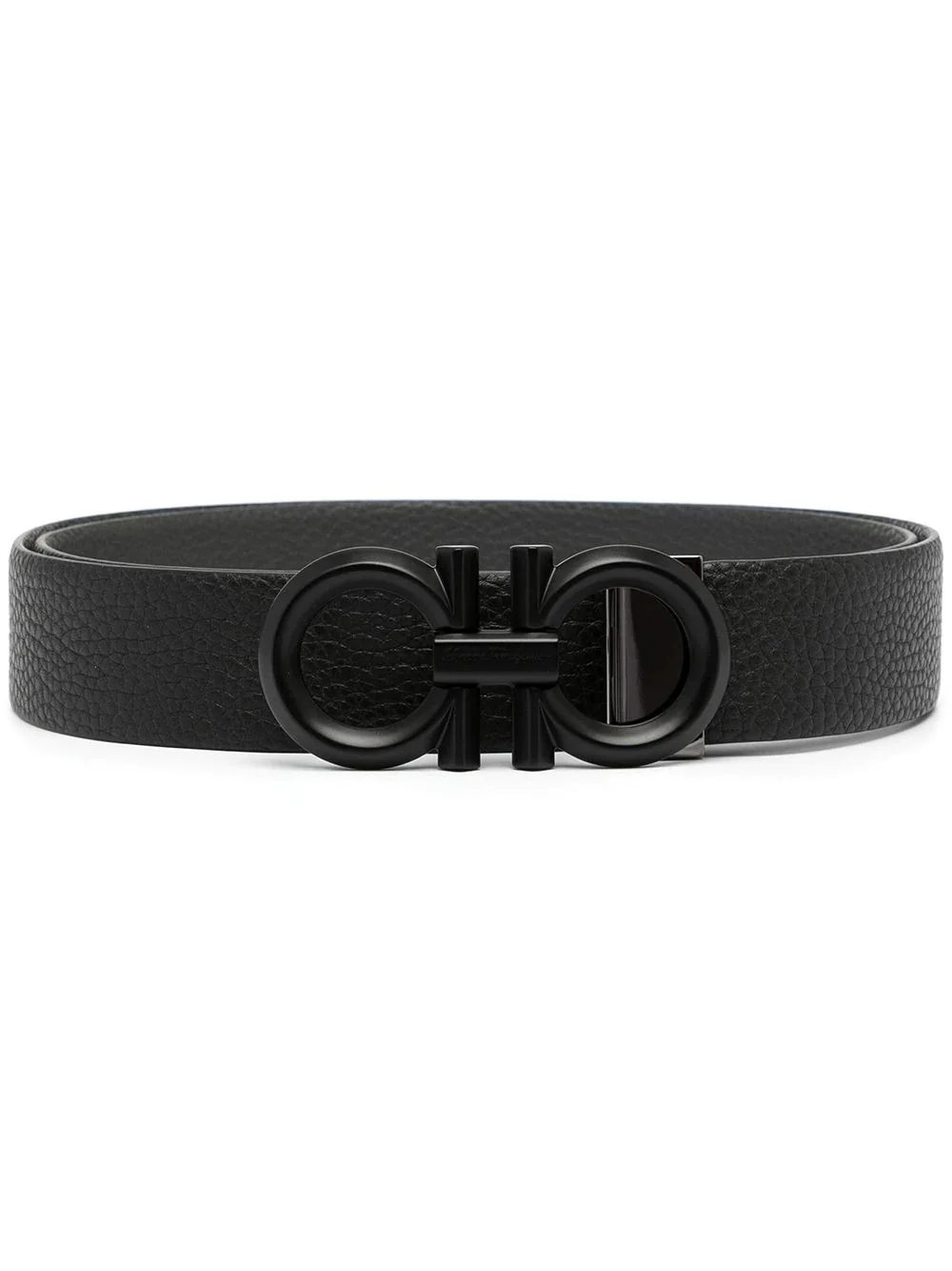 reversible and adjustable Gancini belt Black calf leather double Gancio buckle belt from Ferragamo. Made in Italy Composition Calf Leather 100% SIZE & FIT Measurement Maximum Length 37.4 in(95 cm) Minimum Length 33.46 in(85 cm) TOTAL LENGTH 1.37 in(3.5 cm)