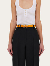 Stylish and endlessly versatile, this reversible two-tone belt is a go-to accessory for effortless everyday dressing. Its 2.5 cm width makes it the perfect match for dresses, skirts, or tailored pants, while the gold-tone Gancini buckle adds a signature touch of sophistication. The adjustable length allows for a more personalized fit and style. We invite you to check our size guide for more information. - height 0.9 IN - Composition: calfskin - Made in ITALY - Product code: 23A565 786258