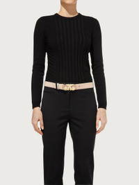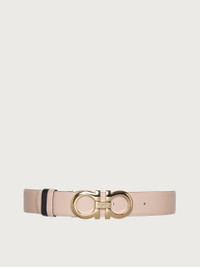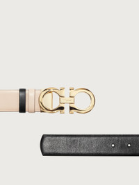This belt is a timeless wardrobe staple. The sophisticated two-tone design is crafted from calfskin leather and adorned with the Gancini buckle. The adjustable length allows for a more personalized fit and style. We invite you to check our size guide for more information. - height 1.3 IN - Composition: calfskin - Reversible and adjustable belt with detachable buckle - Made in ITALY - Product code: 23A564 593873