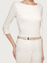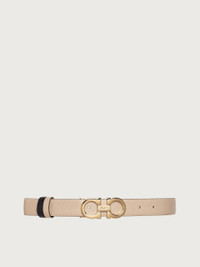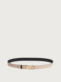 Feminine and versatile, this slim belt has been crafted from supple, hammered calfskin leather and features a gold-tone Gancini buckle for a touch of effortless elegance. The slender design will work with crisp tailoring and casual attires alike. The adjustable length allows for a more personalized fit and style. Easily cut the belt strap or punch another hole for a tighter or looser fit. Customization service is also available in all Ferragamo boutiques. - height 2.5 CM / 0.9 IN - Composition: hammered calf leather - Product code: 23A565 674559 - Made in ITALY