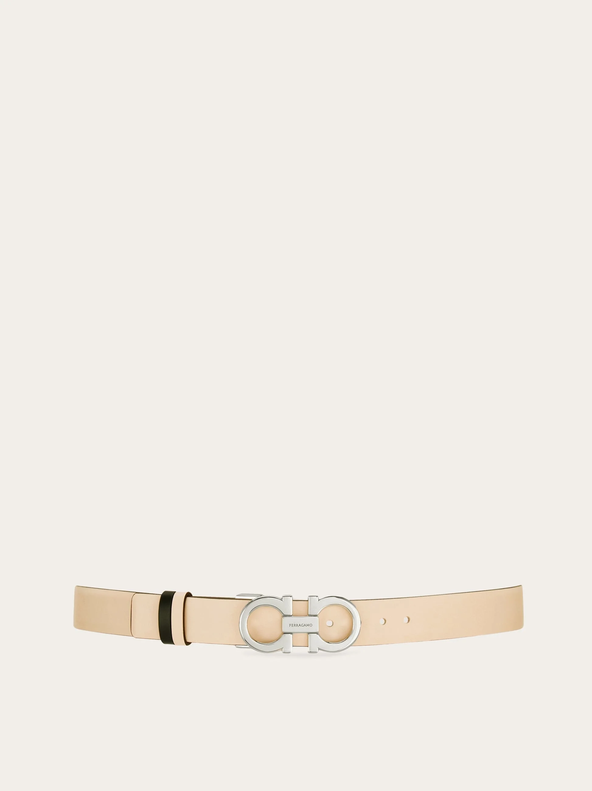 Stylish and endlessly versatile, this reversible two-tone belt is a go-to accessory for effortless everyday dressing. Its 2.5 cm width makes it the perfect match for dresses, skirts, or tailored pants, while the palladium Gancini buckle adds a signature touch of sophistication. The adjustable length allows for a more personalized fit and style. We invite you to check our size guide for more information. - height 0.9 IN - Composition: calfskin - Made in ITALY - Product code: 23A565 786257