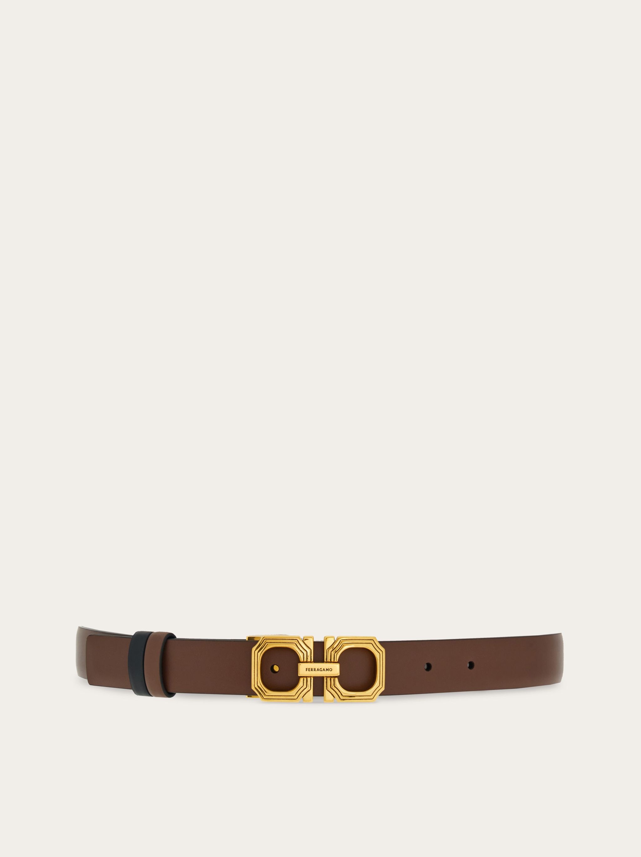 A new twist on the Ferragamo belt, with a dual tone, reversible shaft for flexible styling in a high end key. The sumptuous leather shaft has a naturally grainy finish, and is complemented by a Gancio buckle with a squared profile and a three dimensional look. The adjustable length provides for a custom fit. To adjust the size, the shaft should be cut or have extra holes punctured in it. This service is available in all Ferragamo boutiques. - height 2.5 CM / 0.9 IN - Composition: calfskin - Product code: 230283 764083 - Made in ITALY