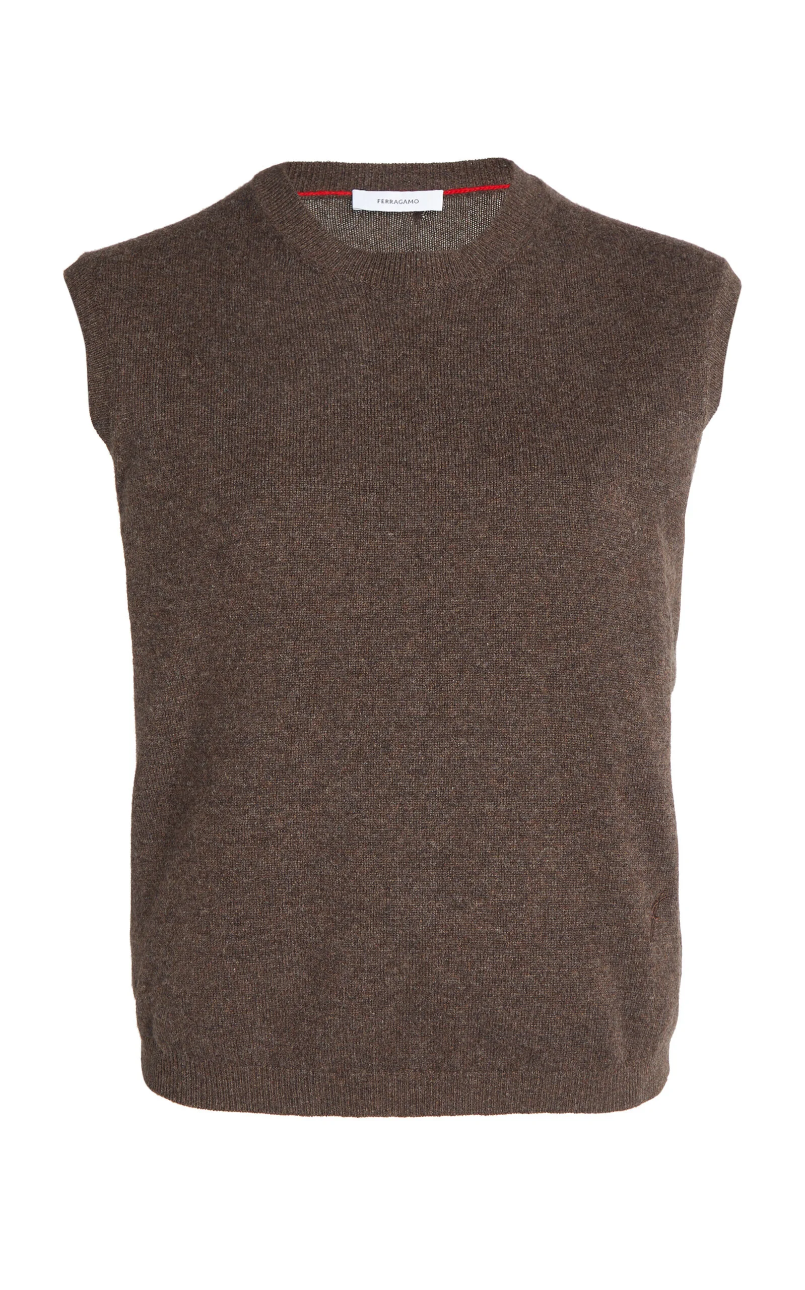 The epitome of everyday luxury, Ferragamo was founded in 1927 by legendary designer Salvatore Ferragamo, known as the "shoemaker to the stars." Under the design direction of Maximilian Davis, today the Florentine house pays homage to the founder's legacy by fusing enduring Italian craftsmanship and contemporary design — with environmental sustainability at its core. Striking the balance between luxury and comfort, this knitted vest is fashioned from virgin wool, woven to a fine ribbed knit. It has a minimal crew neck and a close fit to the waist, making it an ideal layer for tucking into high-rise jeans and skirts. PRODUCT DETAILS - Pre-Fall ‘25 - Slip on - Composition: virgin wool - Dry clean - Designer Color: Swedish Clay Melange - Made in Italy