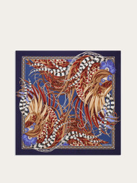 A vibrant palette of color breathes new life into archival elements with bold intensity. This new pure silk scarf, featuring the Rooster print, captures the expressive richness of a rooster’s plumage through a symphony of irregular lines and striking contrasts. Dynamic and refined, it draws the eye with its layered textures and rhythmic graphic energy. A tribute to the beauty of nature, reimagined through the brand’s creative lens. - length 35.4 IN width 35.4 IN - Composition: 100% silk - Made in ITALY - Product code: 310234 790768