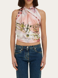 Inspired by an oil painting, this pure silk scarf is adorned with a floral print laid over a shaded background with mosaic-effect frames. Romantic and contemporary with a feminine feel. - length 35.4 IN width 35.4 IN - Composition: 100% silk - Made in ITALY - Product code: 310207 785301