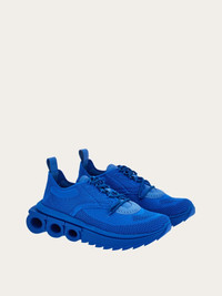 Technical knit sneakers. The soft, second-skin-effect upper pairs with a bold sole featuring branded details and the Gancini silhouettes on the sides that create a filled/void effect. The knit of the upper is made using 100% recycled post-consumer polyester yarn, while the lining and back lining are made from leather tested and verified to have been produced using a chrome-free tanning process. Fussbett bandage lining instead is in leather tested and verified to have been produced using a metal-free tanning process, strobel felt is made using 20% recycled pre-consumer polyester fibres and sewing thread is made from 100% post-consumer recycled polyester. - Composition: technical fabric - Made In ITALY