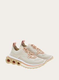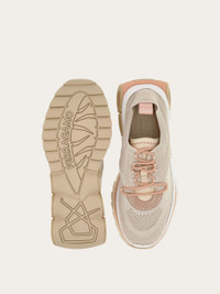 Technical knit running sneaker with suede and nubuck inserts for a sumptuous mix of textures. The soft upper envelops the foot and is complemented by a bold, ultra-light rubber sole featuring three macro Gancini under the heel. The contrasting colors on the tread and midsole create a refined feel. - Composition: polyester and calfskin - Made in ITALY - Product code: 030300 768702