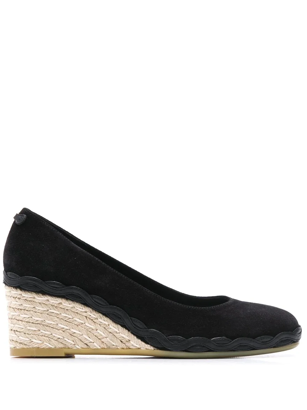 Capraia espadrille wedge pumps Nothing puts a spring in your step like a new pair of shoes. So start off SS20 right with these Capraia espadrille wedge pumps from Salvatore Ferragamo. It looks like you've got a stylish summer ahead. Highlights - Black/pale beige - Suede/leather - Scalloped edge - Round toe - Branded insole - Braided raffia wedge heel Made in Italy Composition Lining: Leather 100% Outer: Suede 100% Sole: Rubber 100% SIZE & FIT Measurement HEEL 1.96 in(5 cm) Sole height 0.39 in(1 cm)