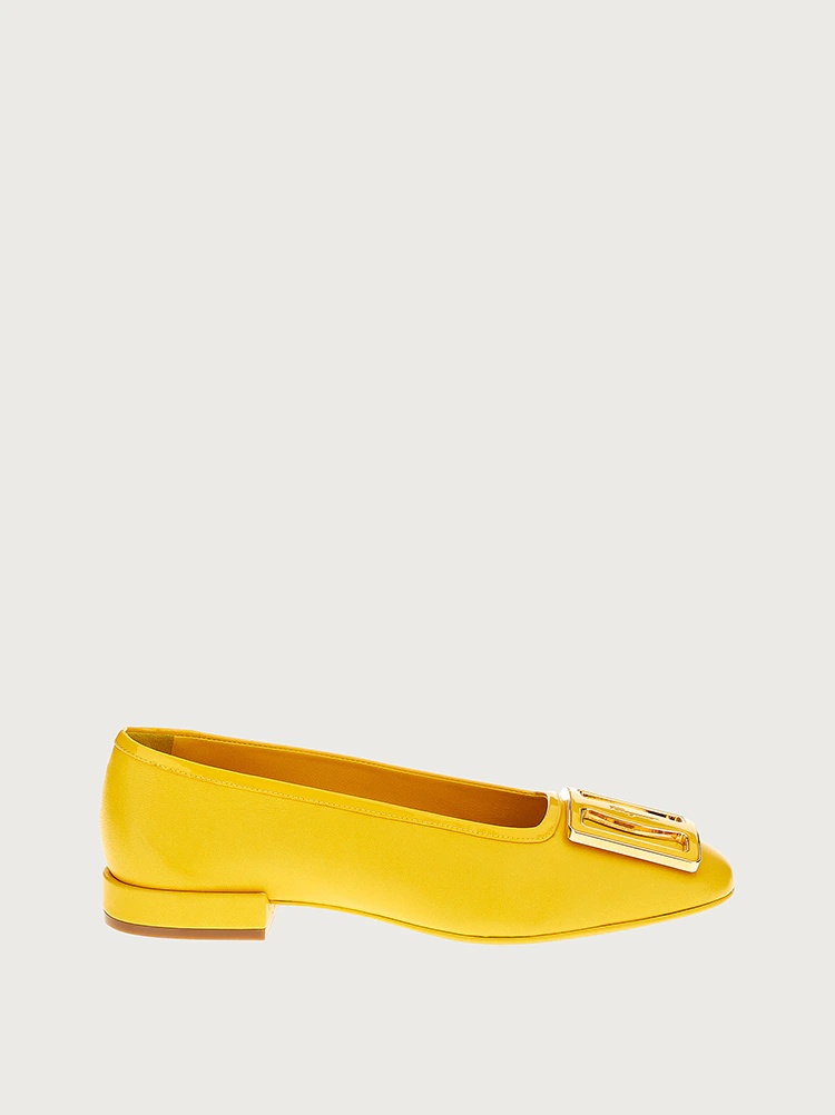 The dance capsule unveils one of the stars in its new collection: made of soft lamb nappa, these sleek, chic slip-ons are made of soft lamb nappa to envelop the foot with a super chic square toe, embellished with a large golden buckle for an iconic look. The super comfortable fit is ideal for walking all day or dancing all night. - Heel 1,5 cm - Composition: lamb nappa - Made In ITALY