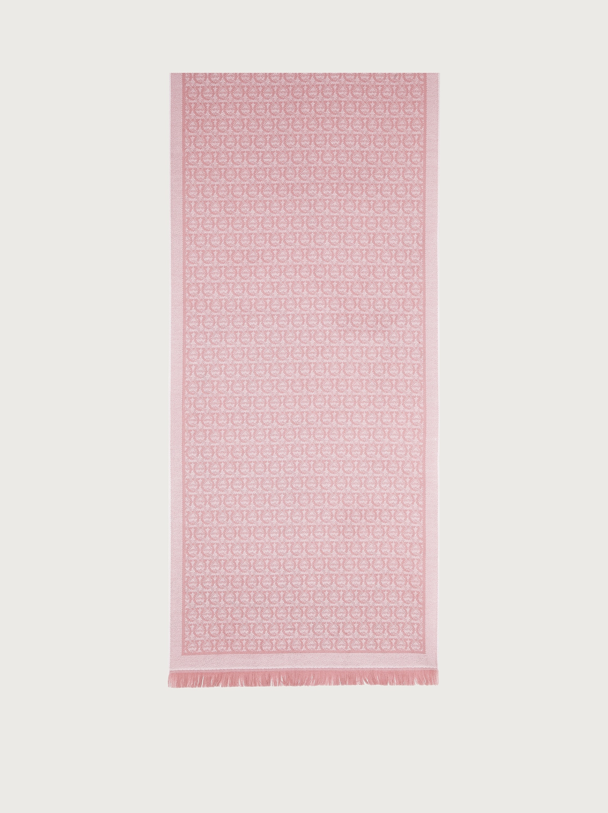 A great classic with a contemporary look, the Gancini pattern in jacquard, decorates this scarf with small fringes. The extra long new dimension makes it a versatile accessory, to wrap around your neck on the coldest days for city slicking or relaxing in the countryside. - length 70.8 IN width 18.8 IN - Composition: 100% wool - Made in ITALY - Product code: 327955 717644