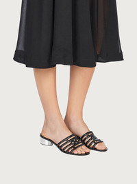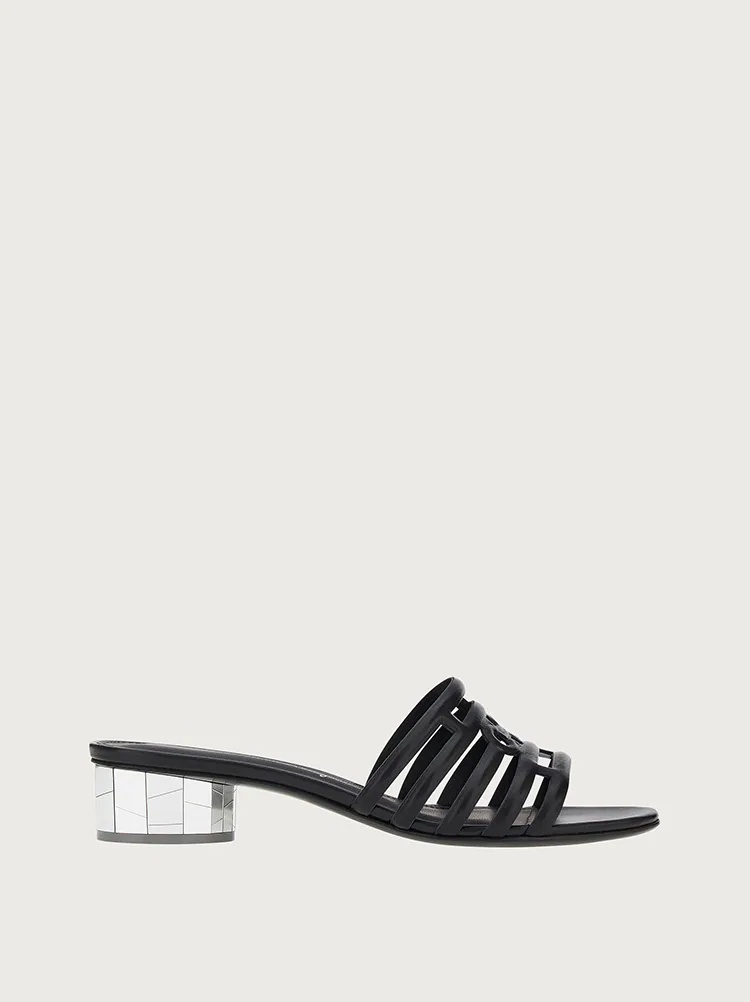 Slip into something more comfortable. The summer slide has never looked so chic. With its contemporary edge, this slinky slip on has a wide strap across the toe, perforated using a high profile technique which ensures an impeccable outline and a soft fit. The mirror finish on the heel is made with laser cutting to create an edgy look that is a sparkling mosaic. The perfect day to nigh shoe. - Heel 3 cm - Composition: nappa - Made In ITALY