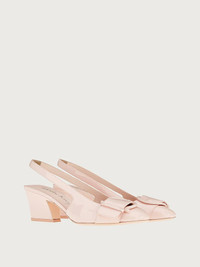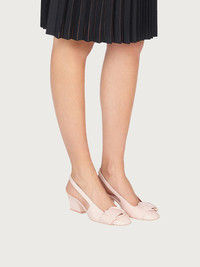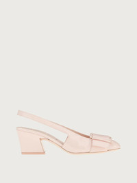 Daywear never looked so good. These sixties inspired slingbacks are dressed up in shiny patent leather with chic accents for a superb look. Details include a round neckline with a tonal maxi Gancini buckle across the toes that adds the perfect Ferragamo accent to this chic slip on. The geometric cut outs on the sides are finished with tonal stitching. Comfortable and refined, the block heel is the perfect height to ensure all day comfort. - Heel 5 cm - Composition: patent calf leather - Made In ITALY
