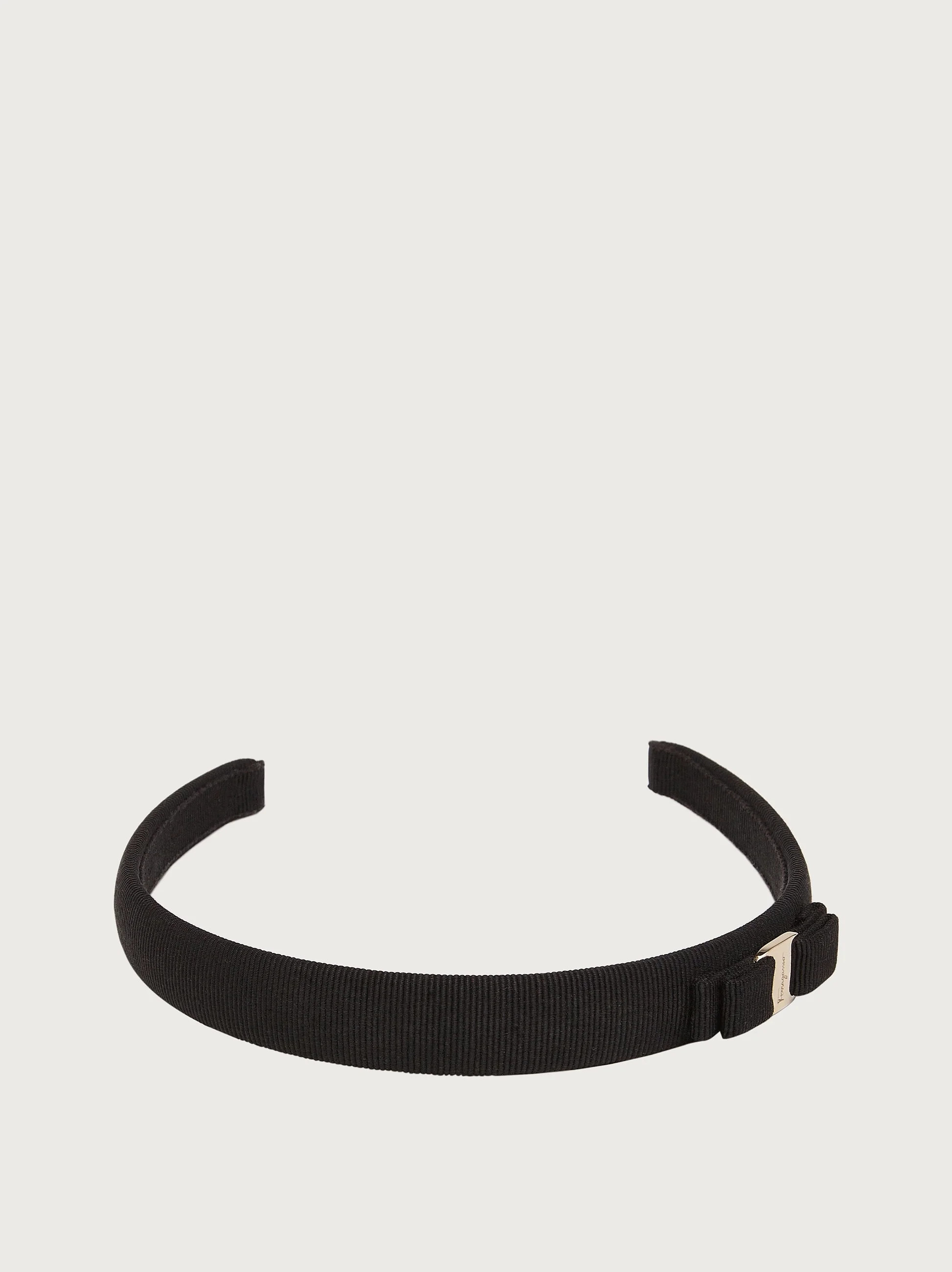 This fabric headband is adorned with a Vara bow and gold-tone plate engraved with the Ferragamo logo. A perfect accessory to add a touch of elegance to every look. Circumference: 36,5 cm. Width in the middle: 2,2 cm. - Composition: fabric - Made in ITALY - Product code: 340086 430314